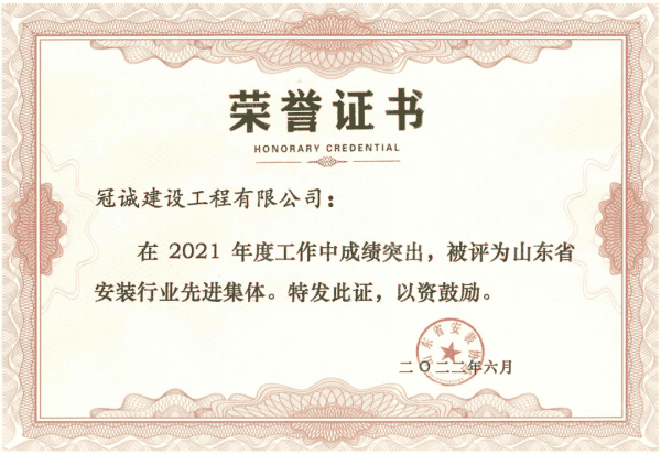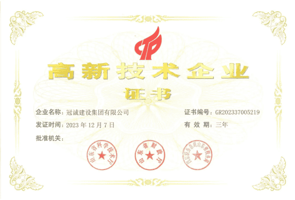 冠诚建设集团有限公司成立于2004年10月,注册资金壹亿元,总部位于“商贸名城、物流之都”的山东省临沂市,以机电设备安装为主的工程总(专业)承包企业。公司始终秉承“冠军品质·诚信天下”的核心价值观,先后被授予“国家高新技术企业”“中国AAA级信用企业”“守合同重信用企业”,并连续多年被评为山东省安装行业先进集体。
