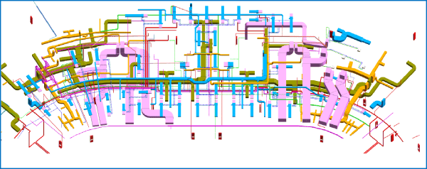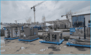 该项目在施工过程中积极应用新技术,推动技术创新,解决了工期紧、施工工艺复杂等问题。项目采用了ALC墙板施工关键技术,创新性地研究并应用了铁尾矿泡沫混凝土技术。通过改性泡沫与铁尾矿的接触方式,成功提升泡沫混凝土的稳定性,并实现该技术在轻质隔墙板中的应用,符合“双碳”目标,降低能源损耗。为提高施工效率与安全性,项目研发新型安装机械和自动铺浆机械,解决传统吊装方式安全性差的问题,尤其是在场馆ALC板材的安装中,极大提升施工效率。针对体育馆管线复杂问题,项目设计了一款带有三通结构的桥架,优化空间利用,减少对竖向建筑空间的占用,同时提高施工和维护的便利性。此外,项目通过BIM技术优化机电管线设计,精确协调弯管与直管的衔接,确保管线布局合理美观,获得实用新型专利《一种带有三通结构的桥架》。这些技术创新不仅提高施工效率,还为项目的高质量推进提供技术保障。