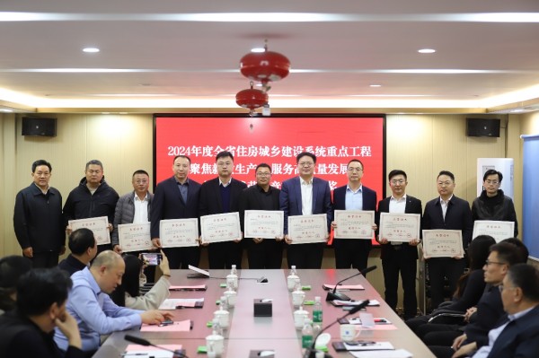 会议现场为2024年度全省住建系统重点工程“聚焦新质生产力 服务高质量发展”创新创优劳动竞赛优胜集体、优胜项目部和优胜个人颁发荣誉证书,表彰先进、树立标杆,进一步营造比学赶超、争先创优的浓厚氛围。