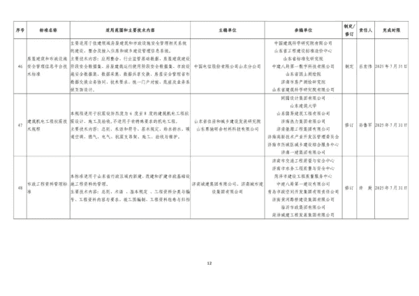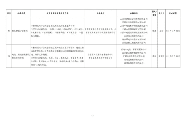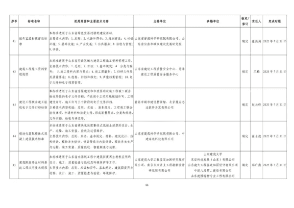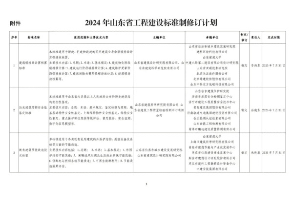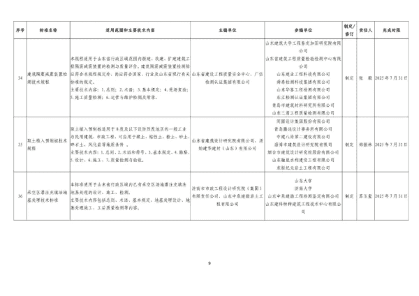 2024年山东省工程建设标准制修订计划