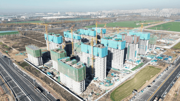 汶上县梁桥社区安置项目B区,总建筑面积约为16.3万平方米,其中地上建筑面积为11.65万平方米,地下两层,总体规划为16栋单体建筑,层数从10层至17层不等,建造高度范围在31.4米至50.3米之间。目前,所有楼栋均已封顶。该项目计划于2026年3月12日竣工,施工总承包单位为中国建筑第五工程局有限公司,监理单位为同诚咨询工程集团股份有限公司。