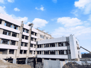 淄博市沂源县北麻社区基础教育服务中心建设项目位于新城路以北、高新路以东,总建筑面积22293.43平方米,包含3座教学楼、2座辅助教学楼、1座报告厅、行政楼及风雨操场等8个建筑单体。建筑结构采用钢框架形式,地上四层,地下一层,整体为装配式建筑,装配率达67%。作为淄博市重点工程,建成后将提供36个班级的教学空间,进一步提升当地教育资源供给,满足日益增长的教育需求。