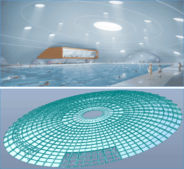 该项目在复杂施工结构中积极应用新技术与新工艺,取得显著成效。项目游泳馆屋盖长轴98m、短轴57.5m,创新选用了钢网格混凝土组合壳体结构,充分发挥钢桁架抗弯与混凝土板抗压的优势,提升整体结构性能。推广应用建筑业十项新技术的10大项39小项,助力施工提质增效。围绕“云环”结构体育服务综合体,开展科技课题研究,攻克新型大跨度钢网格混凝土组合壳体、智慧化高空施工、大悬挑复杂屋面吊装等技术难题,成功实现BIM模型及智能监测应用。此外,研发免拆模装配式钢筋桁架楼承板施工工艺,攻克高空喷射混凝土等技术瓶颈,推动复杂多曲面造型精准施工,有效解决施工难度大、经验缺乏等行业难题,取得科技创新新突破。