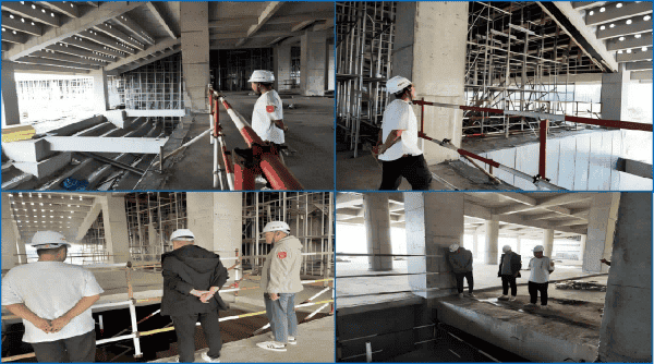 项目部坚持贯彻“安全第一,预防为主,综合治理”的方针,建立健全《双重预防体系建设实施方案》等安全生产制度,推进安全教育经常化、安全检查制度化和安全防护设施规范化,依托智慧工地建设提高安全监管效能,确保项目零事故、零伤亡。项目部建立进度、质量管理体系,设立关键质量控制点,对大体积混凝土浇筑、高大模板、预应力混凝土钢管桁架叠合板施工及叠合板吊装等重点工序实施监督检查,严格控制不同部位混凝土标号及安装管线施工质量。秉承“每建必精、精益建造”的理念,强化巡查检查与精细管理,确保工程质量目标顺利实现,努力打造无愧于社会的精品工程。