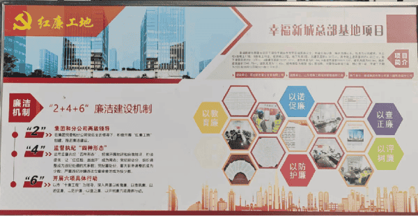 该项目在上级党组织领导下成立临时党支部,积极开展“红廉工地”创建,充分发挥党支部战斗堡垒作用和党员先锋模范作用。通过“主题党日”“三会一课”等活动,组建“党员突击队”“青年突击队”,推广“党建+安全、高效、绿色、品质、智慧建造”模式,推动党建工作与项目建设深度融合。创新实施“135”党建联动机制和“246”廉洁建设机制,严格落实红色党建和廉政建设“六有一好”标准,强化组织建设、廉洁教育和监督防控,逐步形成党建引领、廉洁高效的项目建设品牌,为项目高质量推进提供坚强保障。