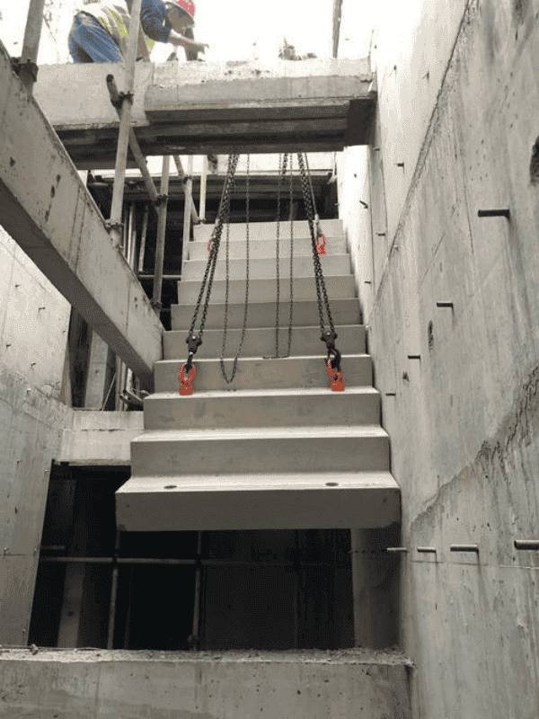 该项目成立“绿色施工实施小组”,细化职责分工,设立环境保护、节材控制、节能控制、技术创新、施工策划与管理等五个小组,推进绿色低碳施工。通过基坑降水井和三级沉淀池系统,实现水资源循环利用,满足消防、混凝土养护、降尘和生活区用水需求,节约水资源,降低碳排放。项目整体装配式广泛应用预应力混凝土钢管桁架叠合板、预制楼梯、ALC板材等装配式构件,其中预制楼梯缩短工期30天,节约成本约50万元。预应力叠合板刚度高、质量轻、抗裂性能好,减少现场浇筑噪音及废水排放,兼具高效与环保,全面助力绿色低碳施工目标实现。