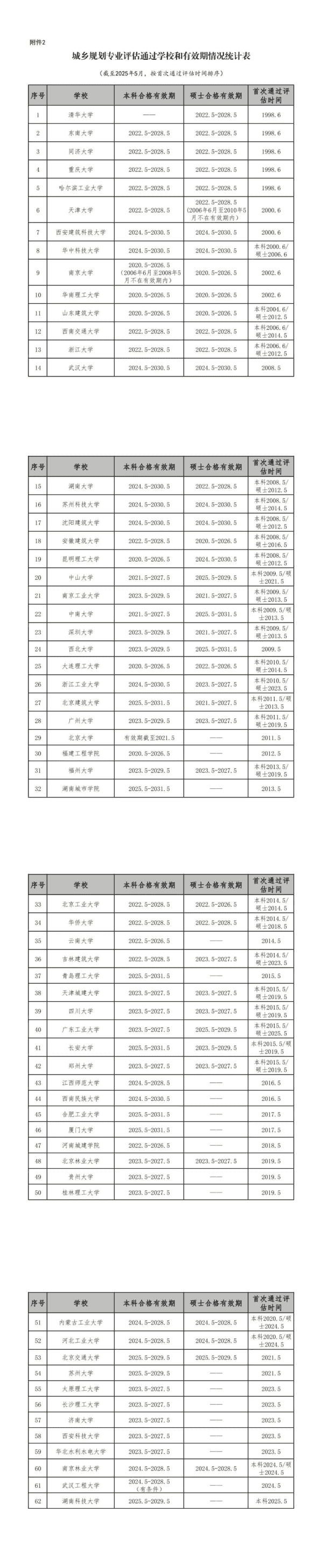 2.城乡规划专业评估通过学校和有效期情况统计表(截至2025年5月).pdf