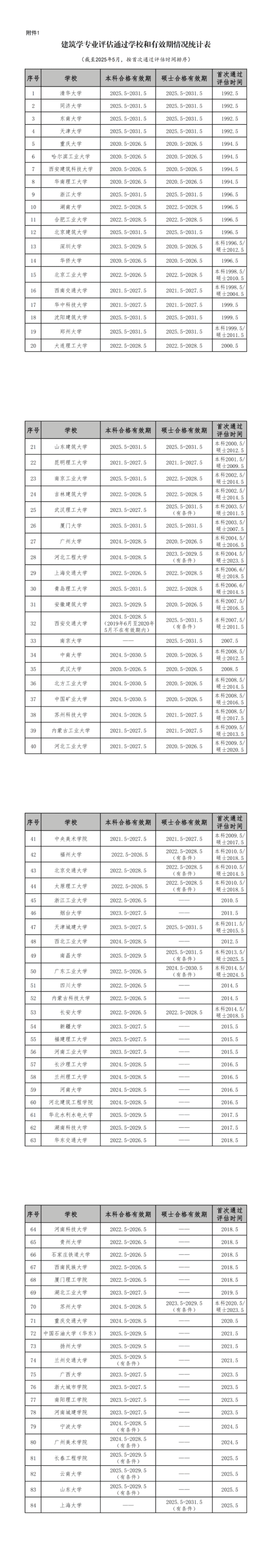 1.建筑学专业评估通过学校和有效期情况统计表(截至2025年5月).pdf
