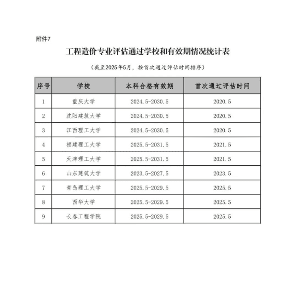 7.工程造价专业评估通过学校和有效期情况统计表(截至2025年5月).pdf
