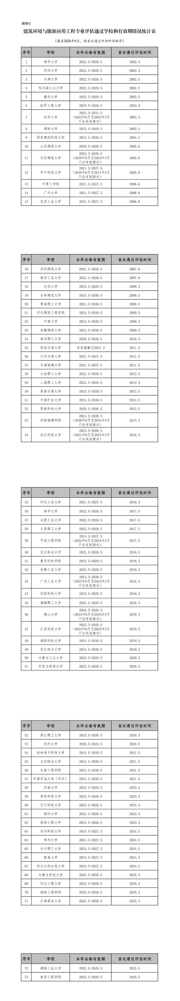 5.建筑环境与能源应用工程专业评估通过学校和有效期情况统计表(截至2025年5月).pdf