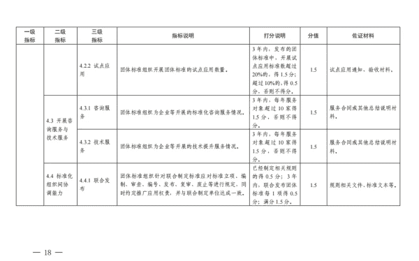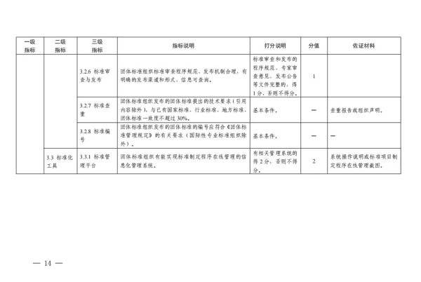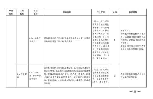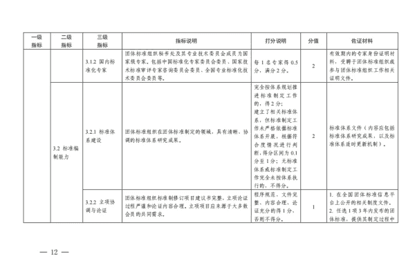 为深入贯彻落实《国家标准化发展纲要》,引导团体标准组织(制定团体标准的社会团体)制定原创性、高质量标准,促进团体标准规范优质发展,国家标准委组织编制了《团体标准组织综合绩效评价指标体系》(以下简称《指标体系》)。现印发给你们,并就有关工作通知如下: