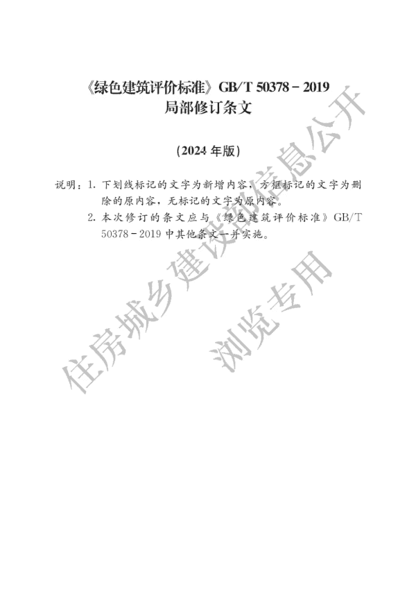 《绿色建筑评价标准》(GB/T50378-2019)局部修订条文全文如下: