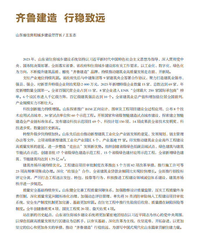卷首语 ▎山东省住房和城乡建设厅厅长王玉志:齐鲁建造 行稳致远