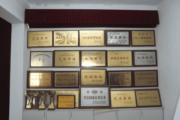 公司先后多次被省、市、县评为先进单位,2019年公司被评为AAA级质量服务诚信单位、AAA级信用企业、AAA级重合同守信用企业、AAA级资信企业、AAA级诚信经营示范单位、AAA级诚信供应商,历年被省工商局授予“重合同,守信用”企业,并通过“三体”认证。