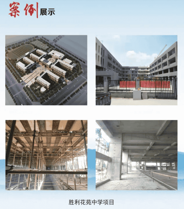 公司先后承担和参与过胜利油田耿井、 民丰、辛安、 仙河、河口、利津、潍坊森达美、宁夏永宁县等各大水库、水厂、污水处理厂等建设及提升工程施工,胜利油田基地及周边县区主要供水、排水管线施工。完工和在建涌金花园及商业配套、新邦名郡、金元郡、金向郡、金御华府、胜利花苑中学、河口区委党校及档案馆、东营市国防教育培训基地、东营区二小、东营区妇幼保健院等十多个小区和大中型民用、公用建筑100余万平方米。公司承揽过南水北调、新疆战略干渠、黄河三角洲沿海城市防潮堤、东营市城乡一体化水质提升、东营市纯化水库引水渠及配套工程、东营市中心城两河(广利河、溢洪河)及内水系环境综合治理工程、王庄灌区抗旱调蓄水源工程、东营市东营区引黄灌区农业节水工程、孤北水库提升改造工程、广北水库除险加固工程等多项国家、省、市重点大中型水利、市政基础建设项目施工。