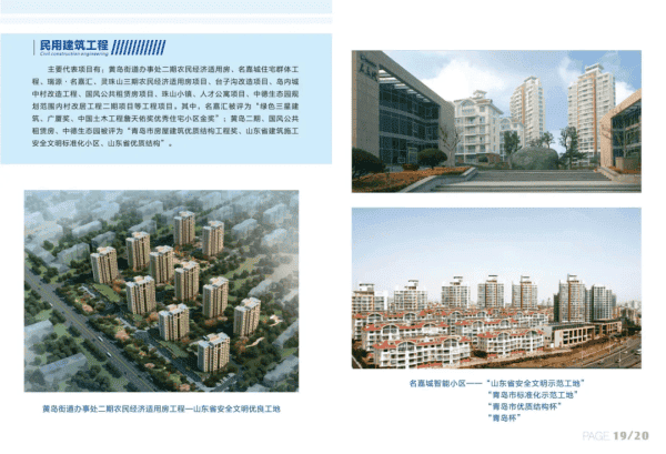 公司注册资本10600万元,施工年产值20亿元以上,拥有大型机械设备240余台(套),固定资产8250万元,拥有管理人员358余名,技术和经济管理人才190名。公司先后通过了质量(ISO9001)、环境(ISO14001)、职业健康(OHSAS18001)安全管理体系认证。是中国建筑业协会会员单位、山东省及青岛市建筑业协会理事单位:全国优秀施工企业、山东省AAA级信誉企业、青岛市优秀建筑业企业;曾荣获中国土木工程詹天佑奖优秀住宝小区金奖,多次获得泰山杯、山东省优质结构杯、山东省绿色科技示范工程、青岛杯、青岛市优质结构杯工程、全国建筑业绿色施工示范企业、山东省安全文明示范工地、青岛市标准化示范工地:申报全国OC成果及全国实用新型专利多项。培养出了一批获得“全国五一劳动奖章”、“山东省富民兴鲁劳动奖章”等荣誉的优秀员工;公司领导及员工先后当选为区政协、人大代表及青岛市党代表。