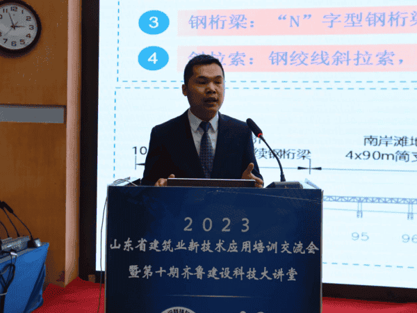 济南城建集团有限公司项目经理李猛、天元建设集团有限公司分公司副总经理郝龙龙、中建八局第二建设有限公司山东绿地国金项目副总工陈骁等单位代表分别作《G104京岚线济南黄河公路大桥扩建工程(引桥、主桥段)施工HHDQ-3标段》《临沂奥体中心》《绿地山东国际金融中心(IFC)》成果分享。围绕建筑领域优秀技术成果,共同探讨建筑业新技术、新工艺、新材料、新设备,得到了与会人员广泛认同。