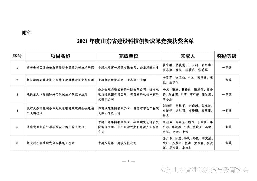 附  件: 关于公布2021年度省山东省建设科技创新成果竞赛结果的通知