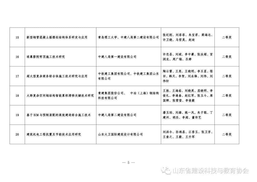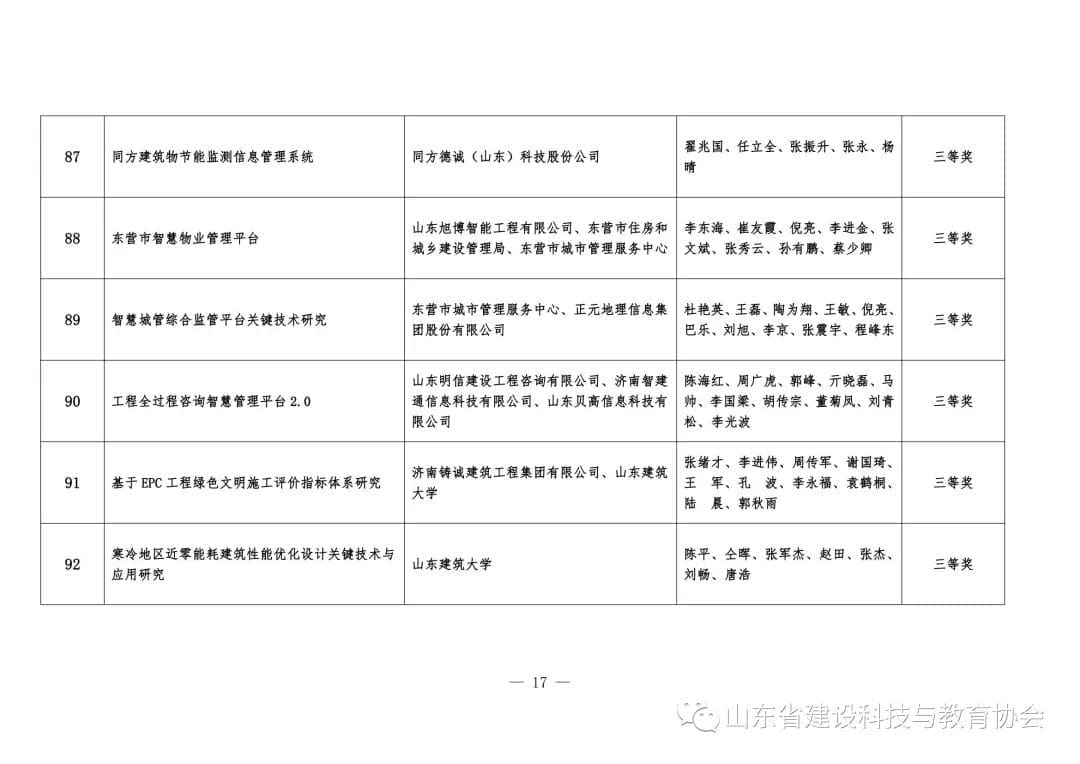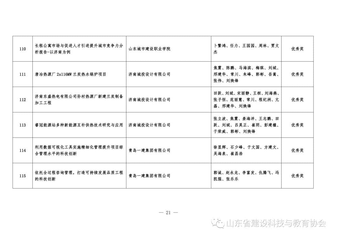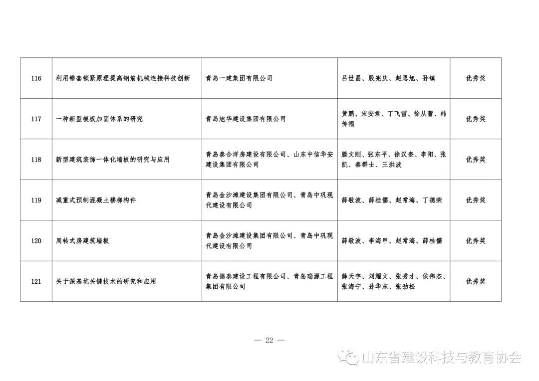 关于公布2021年度省山东省建设科技创新成果竞赛结果的通知