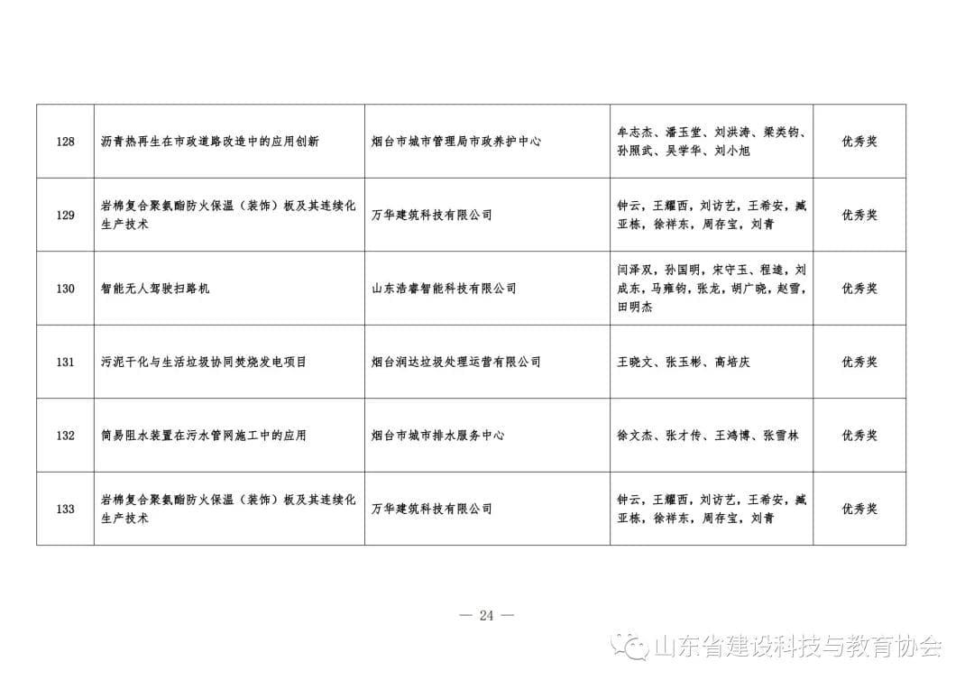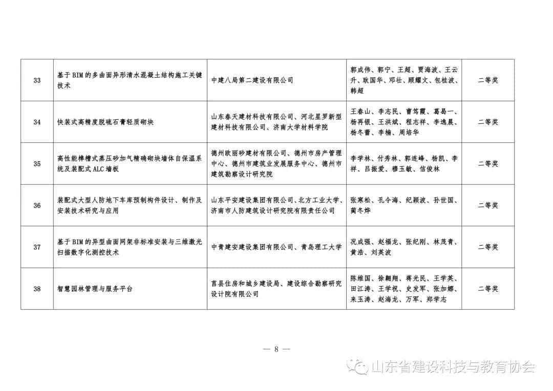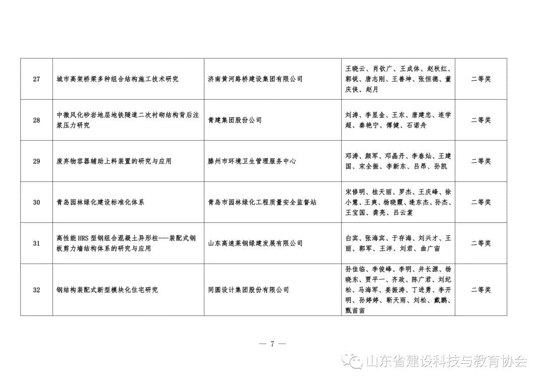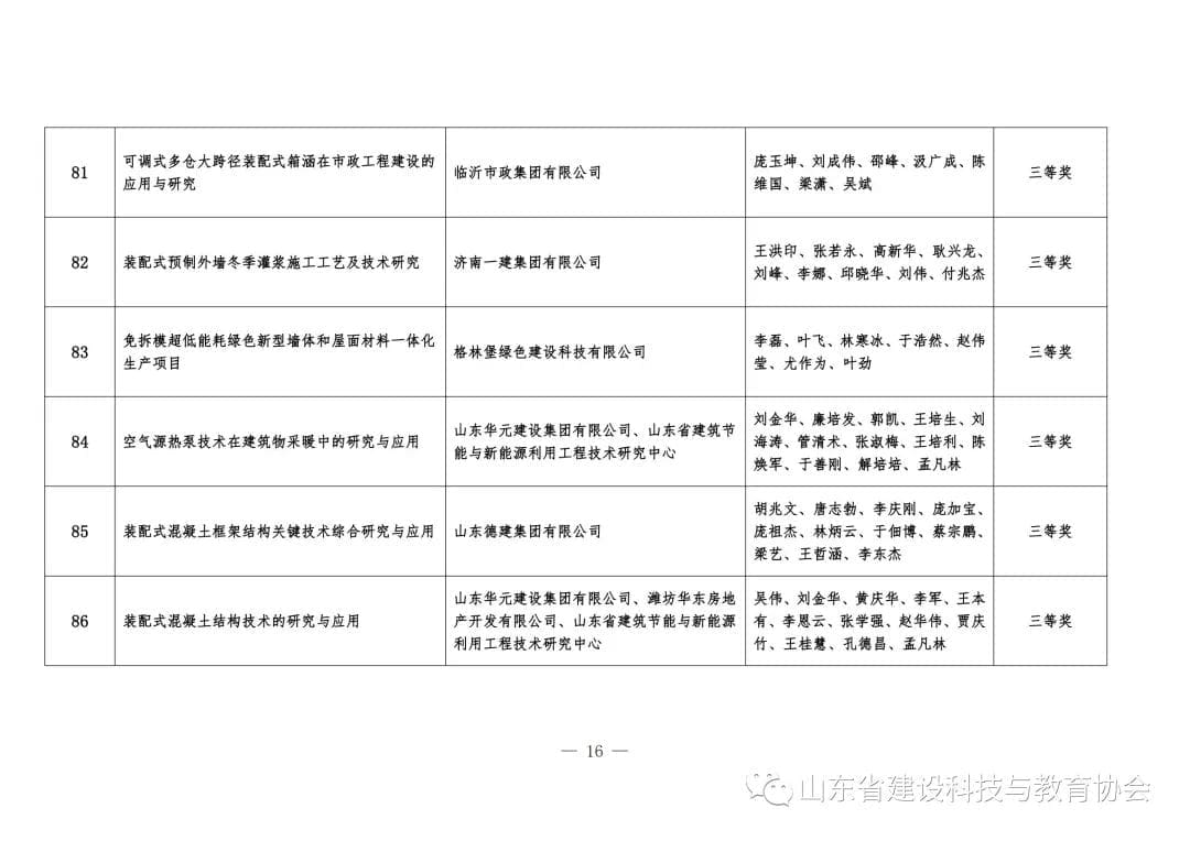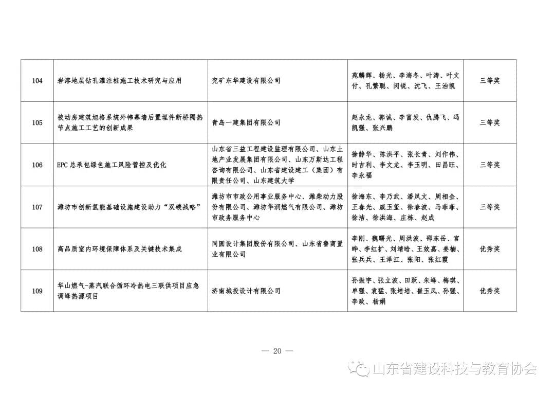 关于公布2021年度省山东省建设科技创新成果竞赛结果的通知