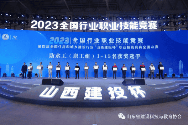经过三天的激烈角逐,山东选手斩获佳绩,揽获3个单项第一,9名“全国技术能手”。其中钢筋工赛项:中青建安建设集团有限公司刘尧顺第1名,帝拓建设有限公司徐兴红第2名,青岛元昌盛房建集团有限公司李世坤第3名;管工赛项:中青建安建设集团有限公司王怀龙第1名,帝拓建设有限公司刘洪健第2名,中旭东岳建设集团有限公司丁兵第3名;防水工赛项:中旭东岳建设集团有限公司赵俊磊第1名,青岛亨通建设有限公司徐西新第2名,中诚祥建设集团有限公司王彪第3名,山东团体成绩第1名,充分展现出我省住建行业职业人才的专业技术和综合实力。
