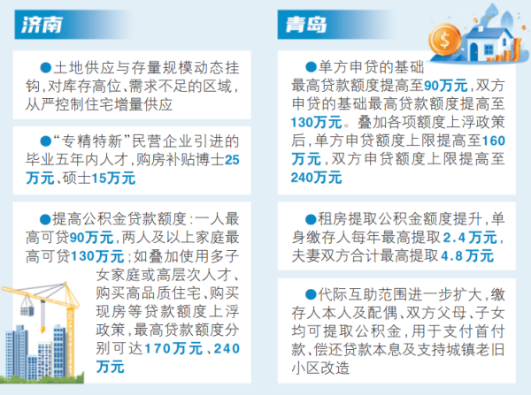 此次双城同日发令,虽有“小阳春”行情的刺激因素,但更多源于稳楼市就是稳经济、稳预期的深刻洞察。济南以“19条”在面上铺开,从控增量、去库存到优供给、促消费,力求系统性破题;青岛则从点上深挖,聚焦公积金工具的灵活运用,让资金流动更丝滑。一“面”一“点”互为补充,正试图通过打通政策堵点,让房地产市场回归“住有所居、居有所安”的良性循环。